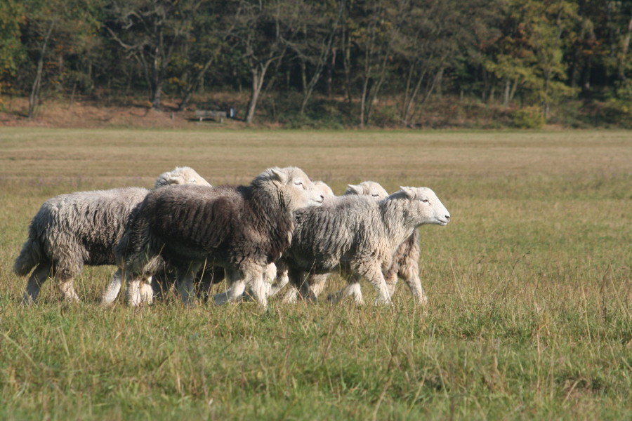 Zoe ist mir beim Outrun hinten einfach noch zu eng und zu hastig. Bobby schaut kurz drauf, geht, holt eine Longierpeitsche und legt Zoe an die Leine, die unglaubliche 400 Meter lang ist. Langsam geht er auf Zoe zu und die Kordel der Peitsche streicht nur ganz leicht durch die Luft bis Zoe reagiert. Verknüpft wird dieses durch die Luft streichen mit der Leine, in dem Zoe kurze Impulse im Nahbereich bekommt. Zoe ist nicht eingestellt, nein, sie ist kalibriert. Bei den darauffolgenden Arbeitsflanken arbeitet Zoe mit perfekten Abstand und versammeltem Trab, dass es eine Freude ist. Beim geringsten Versuch den Schafen zu nahe zu kommen wird die Peitsche durch die Luft gestrichen und gegebenenfalls positioniert man sich um und drückt mit dem Körper. Zoe hat es manchmal gewaltig gestunken, dass der Typ auf der Wiese stand. Bobby hatte aber durchaus seinen Spass mit Ihr, da sie dann doch genau das zeigte, was er sehen wollte.